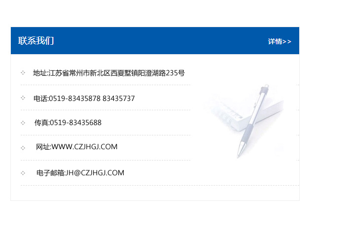 地址:常州市新北區友邦商務大廈1幢16、17層  電話:0519-85101652  傳真:0519-85112595  郵編:213022  網址:www.cz-jiayue_cn.aaaaagzs.com  郵箱:xiajifengaa@163.com